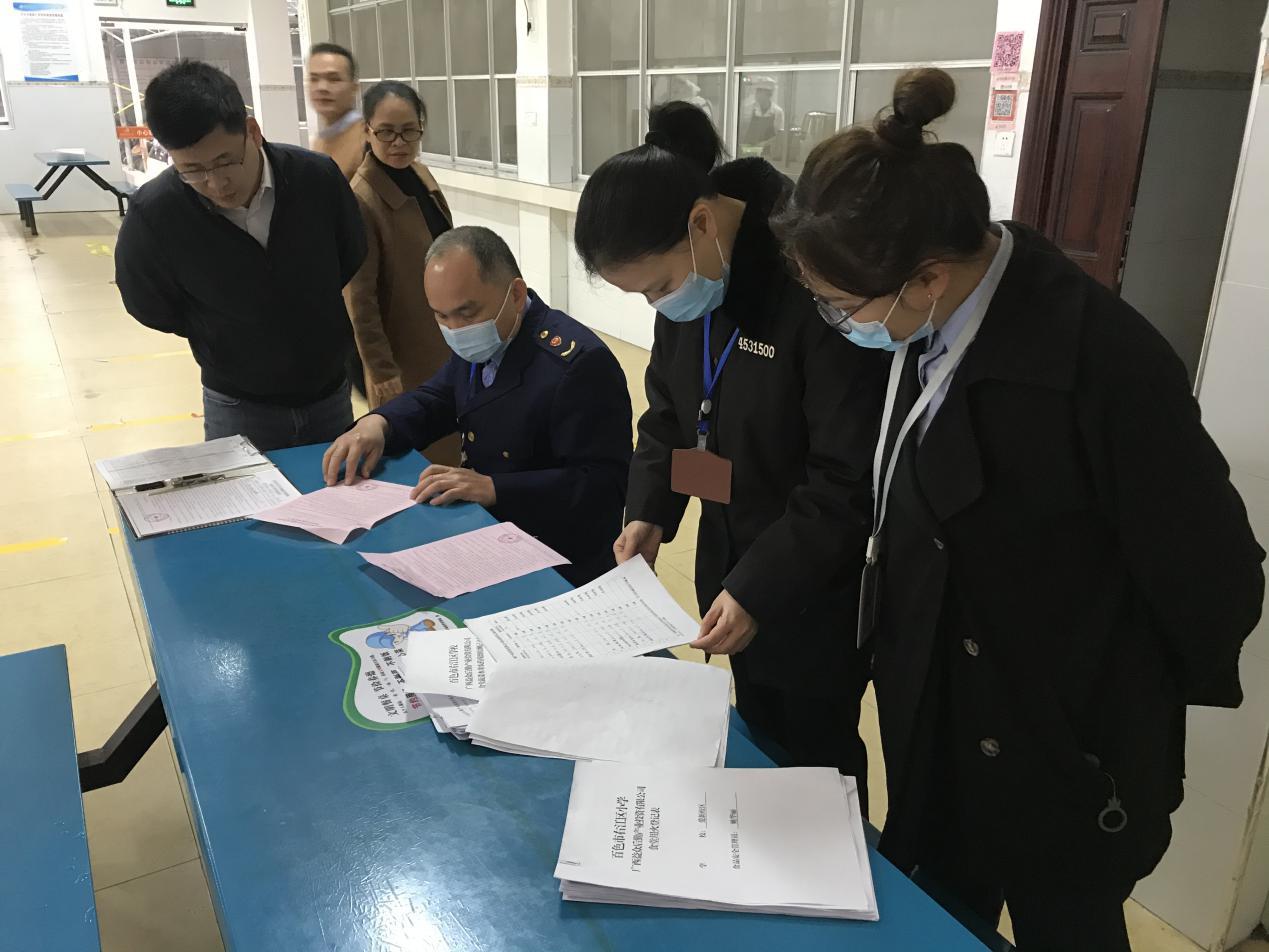 ????????近日,百色市右江區(qū)市場(chǎng)監(jiān)督管理局到益眾托管愛新小學(xué)校區(qū)開展開學(xué)食品安全檢查工作。檢查組對(duì)托管學(xué)生食堂運(yùn)營(yíng)資質(zhì)、工作人員培訓(xùn)持證、食材驗(yàn)收索證流程及備餐等方面進(jìn)行了全面檢查,并對(duì)益眾托管公司的食堂管理模式及標(biāo)準(zhǔn)化建設(shè)給予了高度評(píng)價(jià)。