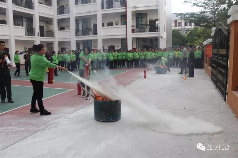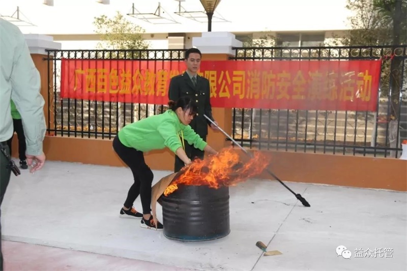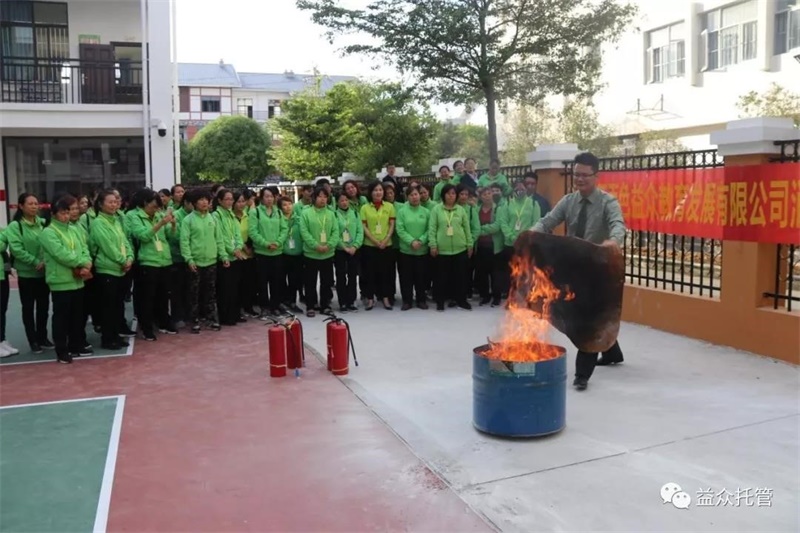 ? ? ? ?為進一步提高員工消防安全防范意識,增強員工對突發(fā)火災(zāi)的應(yīng)急處置能力,根據(jù)《廣西百色益眾教育發(fā)展有限公司2018年消防宣傳月活動方案》安排,2018年11月8日,廣西百色益眾教育發(fā)展有限公司聯(lián)合百色市市安防火中心在我司承接托管業(yè)務(wù)的百色市第一小學(xué)校區(qū)開展了"防災(zāi)減災(zāi)進校園 ?自防自救保安全"消防安全培訓(xùn)活動。本次活動結(jié)合近年來發(fā)生的典型火災(zāi)案例,將消防知識和學(xué)校、學(xué)生安全緊密聯(lián)系起來,深入剖析了火災(zāi)案例的教訓(xùn)并詳細的講解了火災(zāi)類型、火災(zāi)成因、火災(zāi)最佳處置時機、應(yīng)急疏散跟自救逃生方法、各類滅火器材的使用等消防知識。為加深廣大員工對理論知識的理解,讓防災(zāi)減災(zāi)意識"入腦入心",本次活動還相應(yīng)開展了現(xiàn)場初期火災(zāi)處置演練。通過本次活動,廣大員工的消防安全意識得到了進一步提高,應(yīng)急疏散和避險能力有了質(zhì)的飛躍,為我司更好的為學(xué)校、學(xué)生提供貼心服務(wù)打下了良好的基礎(chǔ)。