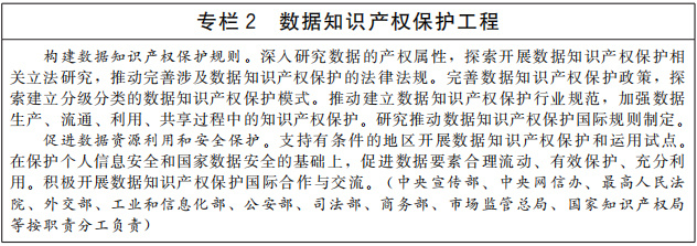完善知識(shí)產(chǎn)權(quán)保護(hù)政策。健全大數(shù)據(jù)、人工智能、基因技術(shù)等新領(lǐng)域新業(yè)態(tài)知識(shí)產(chǎn)權(quán)保護(hù)制度。研究構(gòu)建數(shù)據(jù)知識(shí)產(chǎn)權(quán)保護(hù)規(guī)則。完善開(kāi)源知識(shí)產(chǎn)權(quán)和法律體系。完善電子商務(wù)領(lǐng)域知識(shí)產(chǎn)權(quán)保護(hù)機(jī)制。健全遺傳資源獲取和惠益分享制度,建立跨部門(mén)生物遺傳資源獲取和惠益分享信息共享制度。制定傳統(tǒng)文化、民間文藝、傳統(tǒng)知識(shí)等領(lǐng)域保護(hù)辦法。建立與非物質(zhì)文化遺產(chǎn)相關(guān)的知識(shí)產(chǎn)權(quán)保護(hù)制度。完善體育賽事節(jié)目、綜藝節(jié)目、網(wǎng)絡(luò)直播等領(lǐng)域著作權(quán)保護(hù)制度。完善紅色經(jīng)典等優(yōu)秀舞臺(tái)藝術(shù)作品的版權(quán)保護(hù)措施。完善服裝設(shè)計(jì)等時(shí)尚產(chǎn)業(yè)知識(shí)產(chǎn)權(quán)保護(hù)政策。健全藥品專(zhuān)利糾紛早期解決機(jī)制,制定相關(guān)配套措施。完善中醫(yī)藥領(lǐng)域發(fā)明專(zhuān)利審查和保護(hù)機(jī)制。健全綠色技術(shù)知識(shí)產(chǎn)權(quán)保護(hù)制度。完善高校知識(shí)產(chǎn)權(quán)保護(hù)管理規(guī)定。建立知識(shí)產(chǎn)權(quán)侵權(quán)損害評(píng)估制度。(中央宣傳部、中央網(wǎng)信辦、最高人民法院、教育部、財(cái)政部、生態(tài)環(huán)境部、文化和旅游部、市場(chǎng)監(jiān)管總局、廣電總局、國(guó)家林草局、國(guó)家中醫(yī)藥局、國(guó)家藥監(jiān)局、國(guó)家知識(shí)產(chǎn)權(quán)局等按職責(zé)分工負(fù)責(zé))