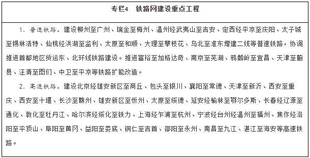 建設(shè)現(xiàn)代化鐵路網(wǎng)。堅持客貨并重、新建改建并舉、高速普速協(xié)調(diào)發(fā)展,加快普速鐵路建設(shè)和既有鐵路擴(kuò)能改造,著力消除干線瓶頸,推進(jìn)既有鐵路運(yùn)能緊張路段能力補(bǔ)強(qiáng),加快提高中西部地區(qū)鐵路網(wǎng)覆蓋水平。加強(qiáng)資源富集區(qū)、人口相對密集脫貧地區(qū)的開發(fā)性鐵路和支線鐵路建設(shè)。推進(jìn)高速鐵路主通道建設(shè),提升沿江、沿海、呼南、京昆等重要通道以及京滬高鐵輔助通道運(yùn)輸能力,有序建設(shè)區(qū)域連接線。綜合運(yùn)用新技術(shù)手段,改革創(chuàng)新經(jīng)營管理模式,提高鐵路網(wǎng)整體運(yùn)營效率。統(tǒng)籌考慮運(yùn)輸需求和效益,合理規(guī)劃建設(shè)鐵路項(xiàng)目,嚴(yán)控高速鐵路平行線路建設(shè)。