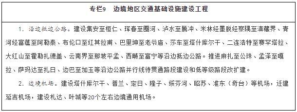 服務(wù)沿邊城鎮(zhèn)體系建設(shè),以公路、機(jī)場為重點(diǎn),大力改善邊境地區(qū)交通出行條件,提升邊境城鎮(zhèn)人口集聚能力。統(tǒng)籌推進(jìn)邊境地區(qū)國省干線公路、農(nóng)村公路等建設(shè),全面完善國道干線主骨架,推進(jìn)沿邊公路并行線建設(shè)和低等級公路提質(zhì)改造,加快抵邊公路建設(shè),盡快形成層次清晰、結(jié)構(gòu)合理的沿邊公路網(wǎng)。穩(wěn)步推進(jìn)邊境地區(qū)機(jī)場建設(shè),構(gòu)建多層級航空網(wǎng),擴(kuò)大航空運(yùn)輸服務(wù)覆蓋面。補(bǔ)強(qiáng)同江、二連浩特、阿拉山口、霍爾果斯、瑞麗、磨憨等口岸后方鐵路通道能力。加強(qiáng)抵邊自然村郵政設(shè)施建設(shè),實(shí)現(xiàn)郵政服務(wù)普遍覆蓋。