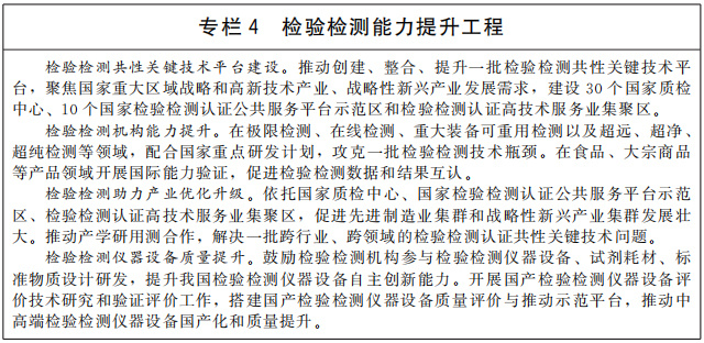 加大認(rèn)可和檢驗(yàn)檢測(cè)改革創(chuàng)新力度。建立適應(yīng)高質(zhì)量發(fā)展需要的認(rèn)可和檢驗(yàn)檢測(cè)體系,實(shí)現(xiàn)檢測(cè)能力顯著增強(qiáng)、行業(yè)規(guī)范運(yùn)行水平和社會(huì)公信力明顯提升。穩(wěn)定事關(guān)人民群眾身體健康和生命財(cái)產(chǎn)安全、公共安全、生態(tài)環(huán)境安全等方面的檢驗(yàn)檢測(cè)隊(duì)伍,建設(shè)強(qiáng)有力的權(quán)威實(shí)驗(yàn)室。堅(jiān)持市場(chǎng)化改革方向,積極推進(jìn)事業(yè)單位性質(zhì)的檢驗(yàn)檢測(cè)認(rèn)證機(jī)構(gòu)改革,促進(jìn)第三方檢驗(yàn)檢測(cè)認(rèn)證機(jī)構(gòu)發(fā)展。建立健全檢驗(yàn)檢測(cè)認(rèn)證行業(yè)品牌培育、發(fā)展、激勵(lì)、保護(hù)政策和機(jī)制,推動(dòng)檢驗(yàn)檢測(cè)認(rèn)證服務(wù)業(yè)做優(yōu)做強(qiáng)。推進(jìn)國(guó)家檢驗(yàn)檢測(cè)認(rèn)證公共服務(wù)平臺(tái)示范區(qū)、檢驗(yàn)檢測(cè)認(rèn)證高技術(shù)服務(wù)業(yè)集聚區(qū)建設(shè),完善檢驗(yàn)檢測(cè)認(rèn)證機(jī)構(gòu)布局,引導(dǎo)檢驗(yàn)檢測(cè)認(rèn)證產(chǎn)業(yè)集約化發(fā)展。組織實(shí)施檢驗(yàn)檢測(cè)促進(jìn)重點(diǎn)產(chǎn)業(yè)優(yōu)化升級(jí)行動(dòng),規(guī)劃建設(shè)一批高水平國(guó)家質(zhì)檢中心和檢測(cè)實(shí)驗(yàn)室。研發(fā)一批重要檢驗(yàn)檢測(cè)技術(shù)和規(guī)定,提升綜合檢驗(yàn)檢測(cè)能力。完善認(rèn)可制度,加強(qiáng)認(rèn)可機(jī)構(gòu)管理,推進(jìn)認(rèn)可結(jié)果國(guó)際互認(rèn)。