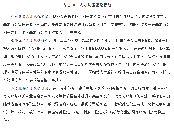 拓寬人才培養(yǎng)途徑。優(yōu)化養(yǎng)老服務專業(yè)設置,結合行業(yè)發(fā)展新業(yè)態(tài),動態(tài)調整增設相關專業(yè)并完善教學標準體系,引導普通高校、職業(yè)院校、開放大學、成人高校等加大養(yǎng)老服務人才培養(yǎng)力度。積極穩(wěn)妥推進1+X證書(“學歷證書+若干職業(yè)技能等級證書”)制度。大力推進養(yǎng)老領域產教融合,培育一批產教融合型養(yǎng)老企業(yè),支持院校和優(yōu)質機構共建合辦養(yǎng)老服務實訓基地,探索將有條件的養(yǎng)老機構發(fā)展成實習實訓點。大力發(fā)展老年學、養(yǎng)老服務管理、健康服務與管理、中醫(yī)養(yǎng)生學相關專業(yè)本科教育。引導有條件的高校開設老年學、老年醫(yī)學、老年護理學、老年心理學、老年社會學、老年營養(yǎng)學、老年服務與管理、老年社會工作等課程,鼓勵高校自主培養(yǎng)積極應對人口老齡化相關領域的高水平人才,加大新技術新應用新業(yè)態(tài)的引才用人力度,為智慧健康養(yǎng)老、老齡科研、適老化產品研發(fā)制造等領域培養(yǎng)引進和儲備專業(yè)人才。落實醫(yī)師區(qū)域注冊制度,鼓勵醫(yī)務人員到醫(yī)養(yǎng)結合機構(同時具備醫(yī)療衛(wèi)生資質和養(yǎng)老服務能力的醫(yī)療衛(wèi)生機構或養(yǎng)老機構)執(zhí)業(yè)。在養(yǎng)老機構舉辦的醫(yī)療機構中工作的醫(yī)務人員,可參照執(zhí)行基層醫(yī)務人員相關激勵政策。